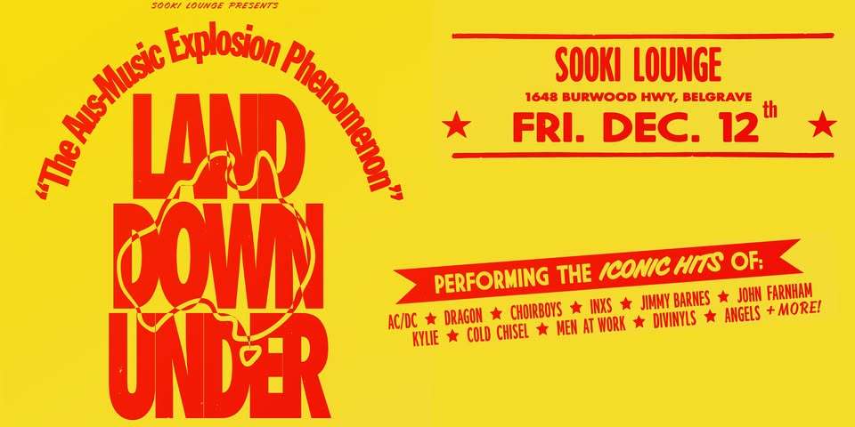 ‘LandDownUnder – Live In Concert’ - THE MOST EXCITING BAND ON THE CIRCUIT hits the Sooki Lounge in Belgrave on Friday December 12 !!!